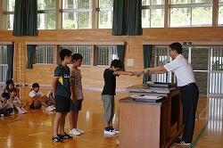 最後に,市内水泳記録会で上位に入賞した児童に表彰を行いました。