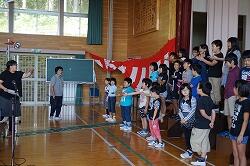 暗唱と早口言葉を披露し,見ていた子どもたちから歓声があがりました。
