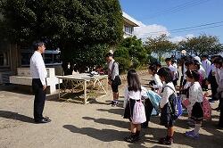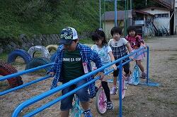 震災による運動不足解消のための支援をいただき,校庭に一輪車練習台と,バスケットゴールを設置することができました。休み時間や放課後に,子どもたちはさっそく活用しています。