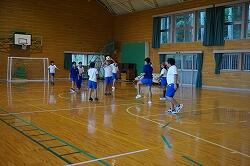運動クラブはハンドボール,遊び探求クラブは学校の裏山を探検しました。