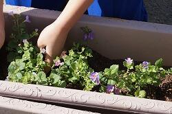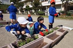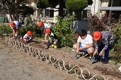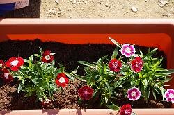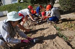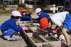縦割り班ごとに,花壇に球根などを植える作業を行った後,プランターにナデシコなどの花を植えました。