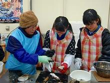 今日,5年生はふるさと学習会でカキむき体験に取り組みました。