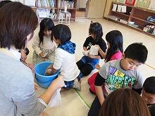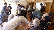 また,唐桑園ではお年寄りのみなさんに歌とよさこいを披露した後,一緒にお手玉をして交流しました。