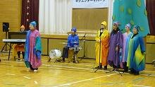 ミュージカル「ライオンキングの音楽を使って」をテーマとして,アフリカの言葉や歌を歌いながらダンスをしました。代表による楽器体験などにも挑戦しました。