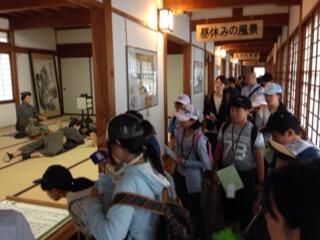 修学旅行2日目は会津藩校日新館の見学からスタートです。会津藩の少年たちがどのような勉強をしていたかを学びました。松岩、小原木、中井小の友達も来ていました。