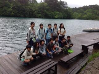 五色沼の毘沙門沼では湖水のライトブルーの美しさに目を奪われました。滅多にお目にかかれないハート柄のある鯉を見つけ喜んでいました。