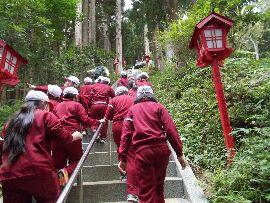 ◆はじめに長い階段を上って「羽田神社」へ。宮司さん,そしてアドバイザーの谷山先生からお話をいただき,その後,神山川上流域へ進み,最後は中流まで降りてきて川の生物を観察しました。