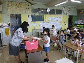 ◆九条小学校では,今年度1回目の通信表を配付しました。コロナ禍において行事や学習活動が万が一順延になることを考え,1学期・2学期・3学期の区別はそのままですが,昨年度から市内小中学校において通信表は,年2回の配付としておりました。