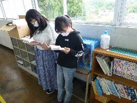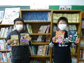 ◆新しい本を買うために,図書委員会ではみんなにアンケートをとって,希望になるべくそうような本を64冊選びました。写真は,図書委員会の委員長さんと副委員長さんです。