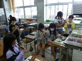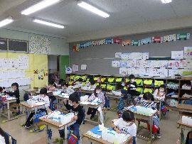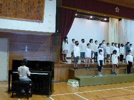 ◆4年生はリコーダーの練習です。曲は「ごんぎつね」。1列おきに立って発表しています。感心したのは,座って聞いている人たちも,発表している友だちの演奏に合わせて,音を立てずに指使いの練習を一生懸命練習していたことです。どんどん上達しますね。