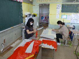 ◆1年生の先生方は,子供たちが下校した後,教室でせっせと何か作っています。子供たちの演技に花を添えるものですね。楽しみです!