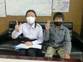 ◆給食の後,ろうかからトントンと校長室のドアをノックする音が・・・。6年生放送委員の二人からのインタビューでした。明日の「杉の子朝会」で放送するとのこと,よろしくお願いします。二人とも午後の学芸会練習の衣装(いしょう)に着替えて来たので,最初はそのことが分からず,特にワイシャツとズボンには「九条小に制服あったっけ?」と一瞬びっくりしてしまいました。