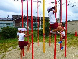 ◆一方で,「登り棒(のぼりぼう)」はまだ克服していない2年生。白鳥先生の話では,1番上まで登る児童はまだいないとのこと。でも,それを聞いた子供たちは,どんどん挑戦し始めました。あきらめない気持ちでチャレンジし続ければいつかは・・・!ぜひ,報告を待っています!