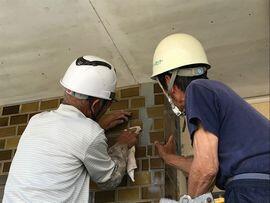 ◆4枚目の写真は,シルバー人材センターの方々が,体育館の外からの入り口タイルを補修している様子です。ひび割れが大きくなってきたので修理をお願いしました。他には,校庭南側のフェンスののり面が少々崩れてきたので土嚢(どのう)を積んで土をかぶせてしっかり安定する作業を,また,ジャングルジムの下の土もなくなってきたので,10センチ以上土を入れて固定していただきました。先々週から暑い中の作業,児童の安全な学校生活のために本当にありがとうございました。