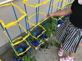 ◆1年生のアサガオがぐんぐん生長してきました。1年2組では,自分の鉢に「支柱」を設置しました。毎日様子を観察しながら,お世話をしています。つるが伸びていくのが楽しみです。