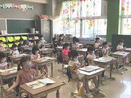 ◆最後は1年生の授業におじゃましました。課題が終わった児童から,1列に並んで担任の先生にまるつけしてもらっている様子です。この光景,大人の皆さんにとってなつかしいですよね。