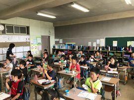 ◆6時間目は,4年生の総合的な学習の時間におじゃましました。明日はいよいよ子供たちが楽しみにしていた「神山川水生生物調査」があります。川に入っての調査のため,救命胴着(ライフジャケット)を身に付ける練習をしています。全体で確認した後,グループに分かれて教え合いながら,全員が着用の仕方を覚えたようです。明日の実地調査が楽しみです!その様子は明日以降お知らせします。