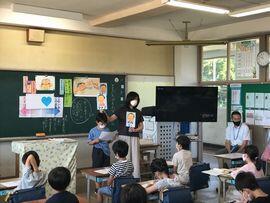 ◆5時間目は4年生の歯みがき指導の時間でした。日本学校歯科医師会等が主催している「第78回全国小学生歯みがき大会」に参加している様子です。DVDを見ながら,歯みがきに関するクイズに答えたりしながら歯肉炎について理解し,正しい歯みがきのしかたを実演したり,デンタルフロスの使い方を学びました。授業の終わりには,この大会への参加賞として,歯ブラシとデンタルフロスを一人一人いただきました。明日からさらにていねいな歯みがきを!
