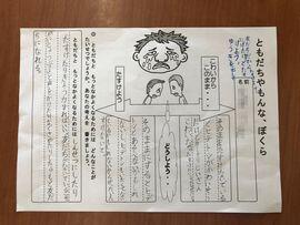 ◆児童は「ともだちやもんな,ぼくら」という話を聞きながら,友だちに関する前田先生の質問に真剣に考えて,自分の考えを書いたり発表したりしました。