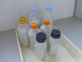 ◆保健室前のろうかには,何かが入ったペットボトルが準備してありました。ひっくり返したり振ったりしてみましたが,「う~ん,何だろう?」。答えは,2学期が始まったら分かるようです。