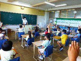 ◆2学期初日、天気も晴れ、待っていたかのように校庭で元気に遊ぶ児童の姿がありました。また、あいさつや授業を受けるときの約束も忘れてはいませんでしたね!