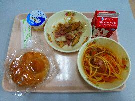 ◆今日の給食は、ミルクパン、牛乳、トマトスープスパゲッティ、ジャーマンポテト、フローズンヨーグルトでした。