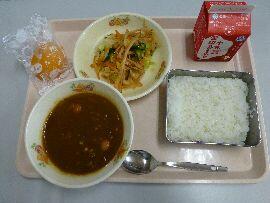 ◆今日の給食のメニューは,エッグカレー,ごはん,カミカミサラダ,冷凍もも,牛乳でした。特に,カミカミサラダはしっかり時間をかけて噛んで食べるよう工夫されていました。歯・歯ぐきの健康にとても大切なことですね。