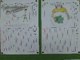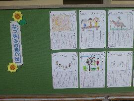 ◆夏休みの宿題の代表的なものに,「絵日記」があります。2年生の廊下には絵日記が掲示されていました。遠い昔の私が小学校の時は,かなりの日数分の絵日記が宿題で,夏休み最終日まで苦労した思い出があります。