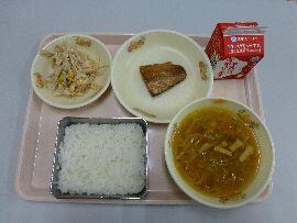 ◆今日の給食のメニューは,さばのみそ煮,ごぼうサラダ,ひきな汁,ごはん,牛乳でした。