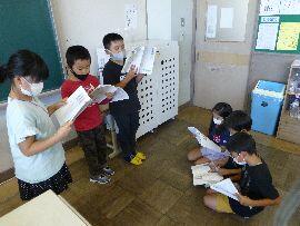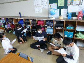 ◆まずは読書の様子です。8時15分から,曜日によって読書,計算ドリル,漢字,朝会などを行い,その後,朝の会を行います。読書タイムはみんな落ち着いてしっとりと,自分が持ってきた本を読んでいました。