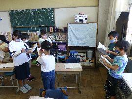 ◆授業を参観して「すごいなあ」と思ったことは,子供たちが役(やく)になりきって練習する際,「こんなふうに読んでみようか?」などと班の友だちどうしで読み方をアドバイスし合っていること,そして「感情がこもっていてうまいね!」などとお互いにほめ合っているところでした。どんどんバージョンアップしています。発表も楽しみですが,発表に向けて協力して自分たちで成長している道のりがすばらしいですね!