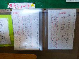 ◆教室を見わたすと「きらりノート」というコーナーがありました。友だちのきれいにノートを取っていた例,自分で工夫してノートに書いた例など,参考になる友だちのページが掲示(けいじ)されていました。担任の先生の赤〇もいっぱいついていました。