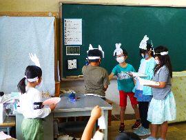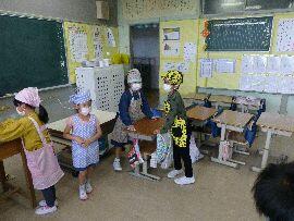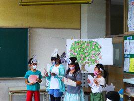 ◆最近の国語の時間は,何か楽しそうです。みんな台本みたいな紙を持って台詞(せりふ)の練習を始めています。「お客様におしりを向けないようにね。」と先生の声。何の練習かは想像がつきますよね。今後が楽しみです!