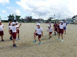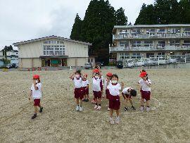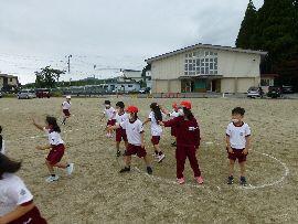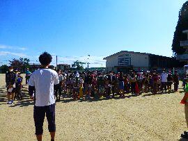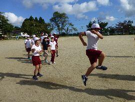 ◆週末なのでもう1つ。1年生の体育の様子です。3チームに分かれての鬼ごっこのようなもの。とにかく必死,一生懸命の様子です。担任の先生から聞くと,この活動はただの鬼ごっこではなく,お互いに助け合ったりする要素もふくまれているとのこと。子供たち同士で「ありがとう!」の声も聞かれました。1年生,もっともっと友だちと仲良くなりますね。