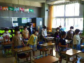 ◆その後は,今月の歌となりのトトロでおなじみの「さんぽ」をCDに合わせて各教室で歌いました。途中プレーヤーの調子が悪く,伴奏が止まってしまっても,1年生は気にしないでみんなで声を合わせて歌っていました。