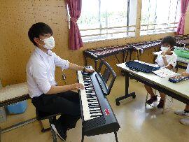 ◆2年生は,けん盤ハーモニカの授業でした。曲は「山のポルカ」。担任の先生のキーボードを手本に,みんなで一生懸命演奏しています。