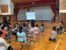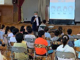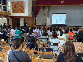 ◆インターネットやスマホ・携帯電話に関するトラブルについての映像を見ながら,講師の先生から子供たちへ質問があり,子供たちは自分の考えを発表するという対話形式で講話が進み,児童と保護者の皆さんはネットトラブルについて理解を深めたようです。