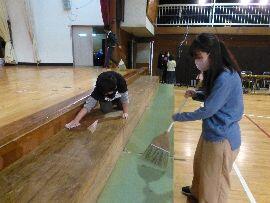◆いよいよ明日17日(日)は学芸会一般公開の日です。午前中は,学年ごとの最終練習がありました。そして,6年生と職員が一緒になって会場,トイレ,昇降口などの清掃・準備を行いました。