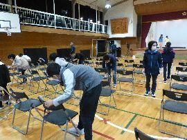 ◆自分の分担が終わると自ら仕事を見つけて他の分担を手伝う児童,保護者席のたて・よこをしっかりとそろえる児童,パイスいすを点検してシートがちょっとでも破れていると取り替える児童など,明日の学芸会でお客様を迎えることに気持ちをこめている6年生と職員でした!