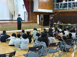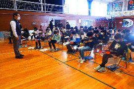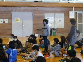 ◆体育館に集合後,「いかのおすし」(知らない人についていかない,他人の車にらない,おごえを出す,ぐ逃げる,何かあったらすぐらせる)についての確認,その他,スマホでの書き込みやいじめは犯罪になる等の講話をいただき,最後は児童代表として,6年生の熊谷来翔さんと菊田美洋さんがお礼の言葉を発表しました。