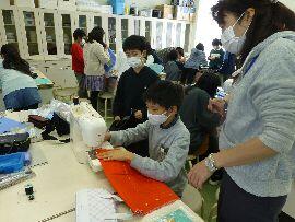 ◆5年生は,家庭科「ミシンでソーイング」の学習で,ミシンを使った作品を作っています。初めてミシンを使う児童が多く,それでいて早くミシンにふれるのを楽しみにしている様子でした。