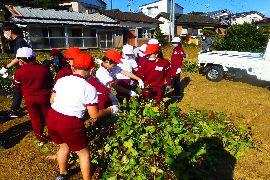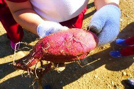 ◆思った以上の生育で,菅原さんも「こんなのははじめてだぁ!」と驚いていました。子供の一人は,「よっこらしょ,それでもサツマイモはぬけません。」との掛け声。「大きなかぶ」のフレーズをおぼえているのですね。