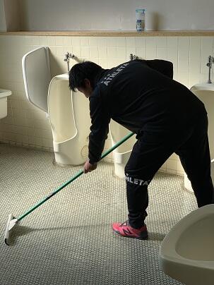 教室の清掃・消毒,トイレ等使用した場所の清掃・消毒を行っています。