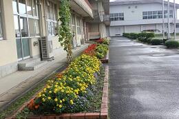 校舎前の花壇に整備委員会の生徒が中心となって,花の苗を植えました。