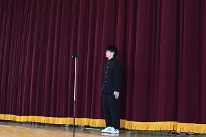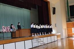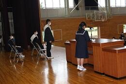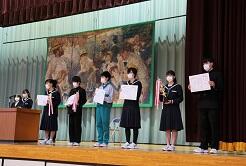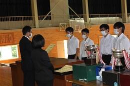 好成績を収めた地区新人大会や英語暗唱・弁論大会などの賞状を伝達しました。一人一人晴れやかな表情でした。