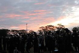 朝焼けの中,出発式を行い,3年生が修学旅行に出発です!!
