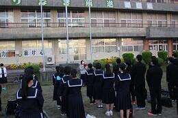 地区中総体陸上競技などの表彰の後に,朝会を行いました。朝会では校長より,「夢」と「志」の違いについての講話があり,皆真剣に耳を傾けていました。