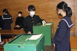 これまで緑光会(生徒会)をリードしてきた現役員からバトンを受け取る新会長,副会長を選ぶ選挙を行いました。新リーダーを選ぶため,一票の重みを感じながら,全校生徒が投票を行いました。