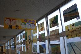 1階美術室前には,授業で制作した作品や作品展に出展した生徒の作品を展示中です。当日にどうぞご覧ください。