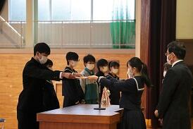 いよいよ3年生が待ちに待った修学旅行に出発します。来週の出発に先立って,結団式を行いました。